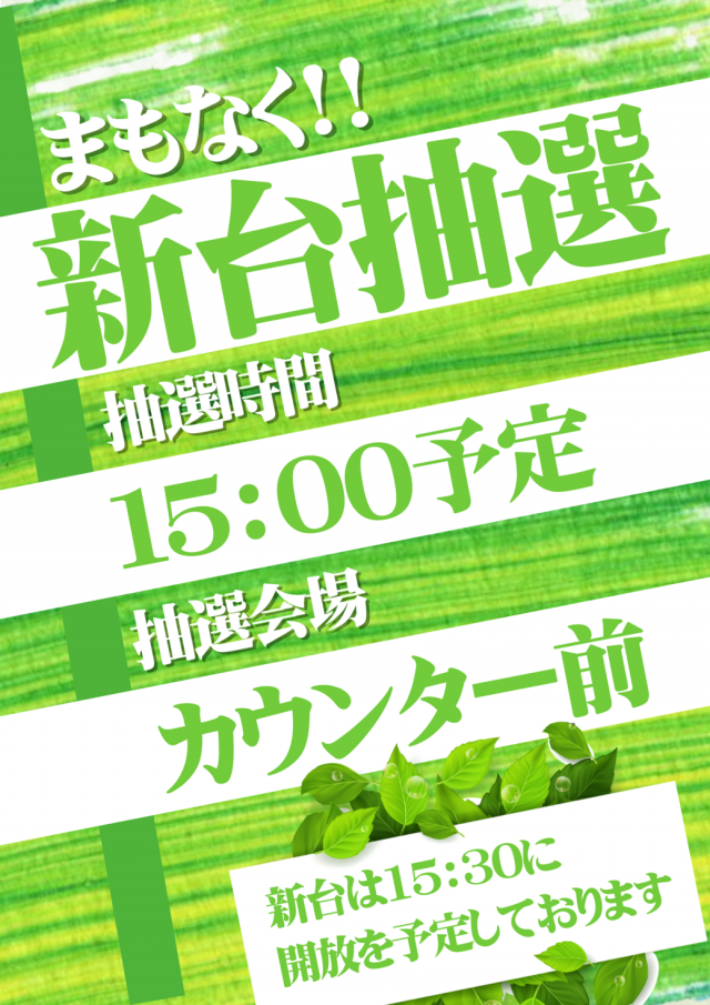 明日 1/15㊊ 新台入替!!全館 9 時開店!