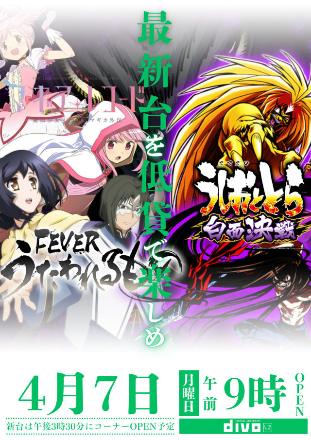 明日 4/7 (月) 新台入替! ”最新台”を低貸で!!