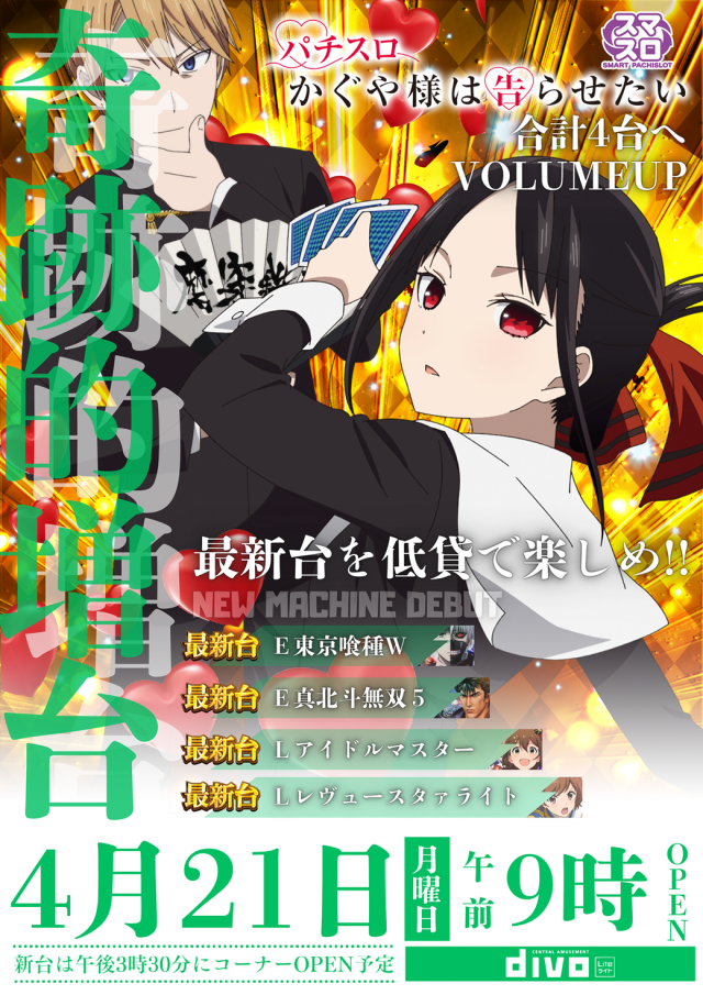 明日 4/21 (月) 新台入替! ”最新台”を低貸で!!