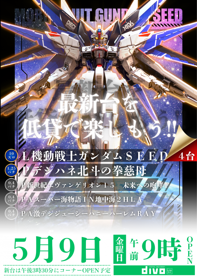 明日 5/9 (金) 新台入替! ”最新台”を低貸で!!