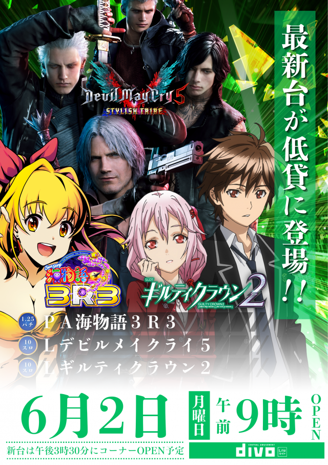 明日 6/2 (月) 新台入替! ”最新台”を低貸で!!