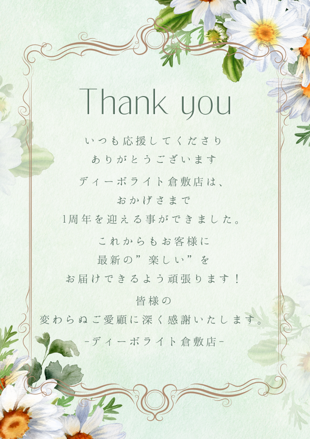 【本日】お客様のおかげで1周年を迎える事ができました。