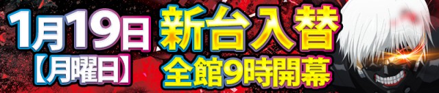 1/19 新台入替★e東京喰種&スマスロ北斗待望の増台予定!