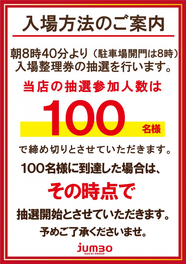 8:40抽選開始 抽選会場:立体駐車場1F |