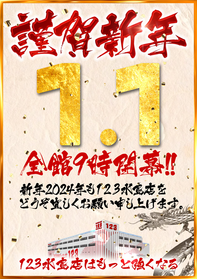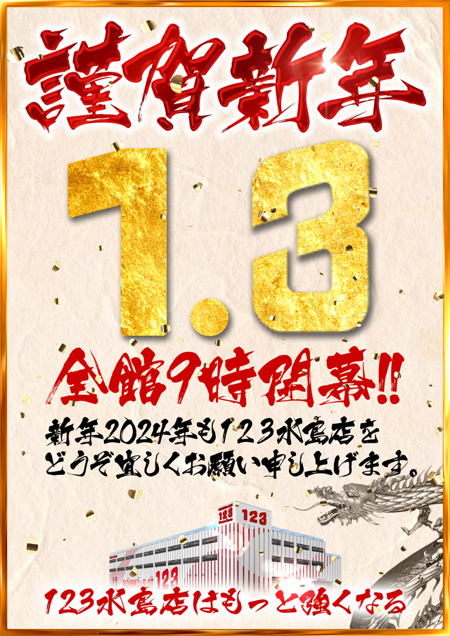 【1.1】◇◆謹賀新年◆◇ 打ち初めは123へ!
