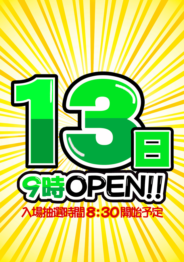 13日(火) 北斗の拳増台完了!朝9時オープン!