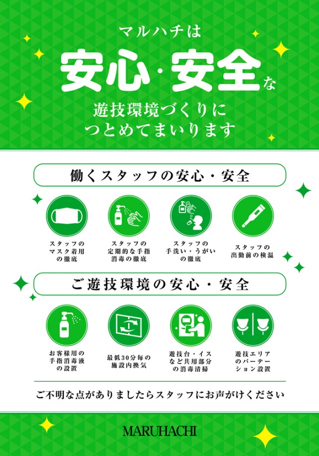 マルハチはスタッフ一丸となって、お客様に安心で清潔な空間を提供するため、日々努力して参ります。