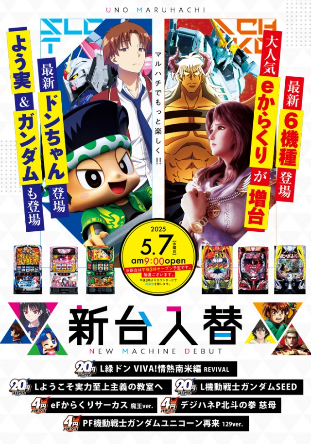 本日週末新台入替❗❗ 最新台も、宇野マルハチも見逃せない