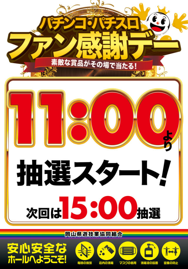本日朝9時ファン感謝DAY抽選券配布(予定) ご参加ください