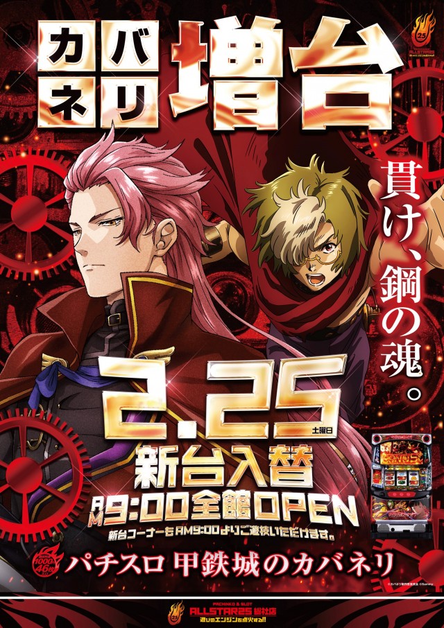 パチスロ甲鉄城のカバネリ(AT)3台へ増台