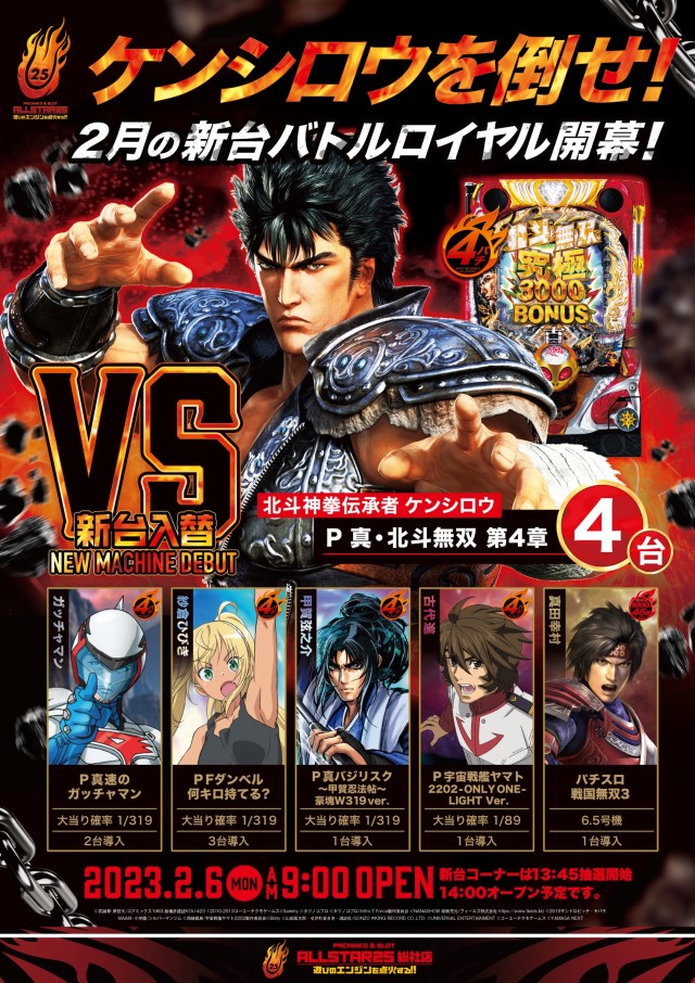 本命は3000個大当りを搭載しつつもバランスの取れた設計の北斗無双4ですが、はたしてケンシロウを超える新台は現れるのでしょうか?