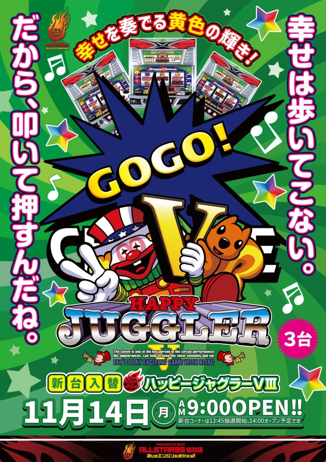 ちなみに同メーカーから「ハッピージャグラーVⅢ」のリリースが一週間後に迫っていますが、当店への導入は来月の予定です。