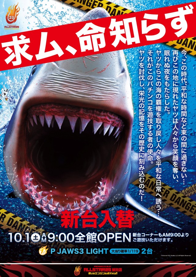 かなり荒い台となっていますが、当店のJAWSを討伐してくれる命知らずをお待ちしています。