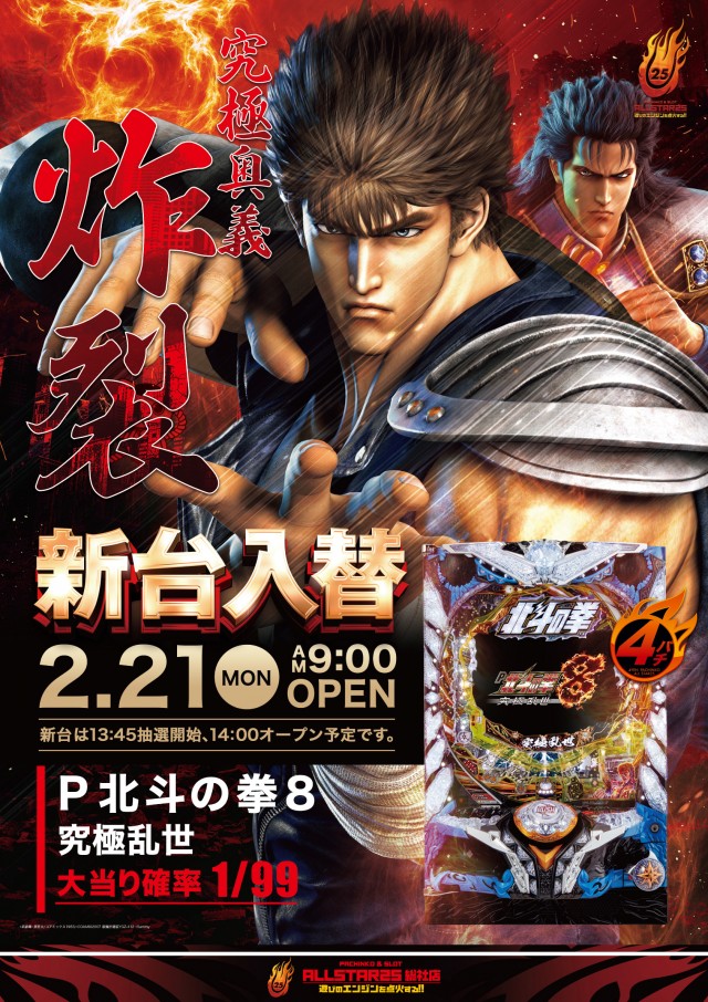 今回の新台入替で設置期限が他のCR機より少しだけ長かった「CR真・花の慶次2漆黒の衝撃」も撤去へ。