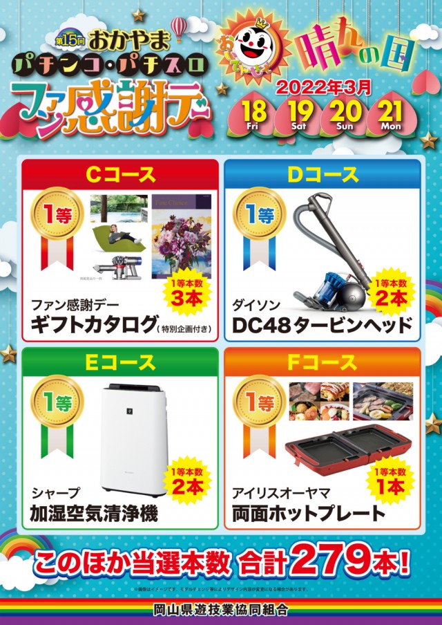 第15回おかやまパチンコ・パチスロファン感謝デーのお知らせ