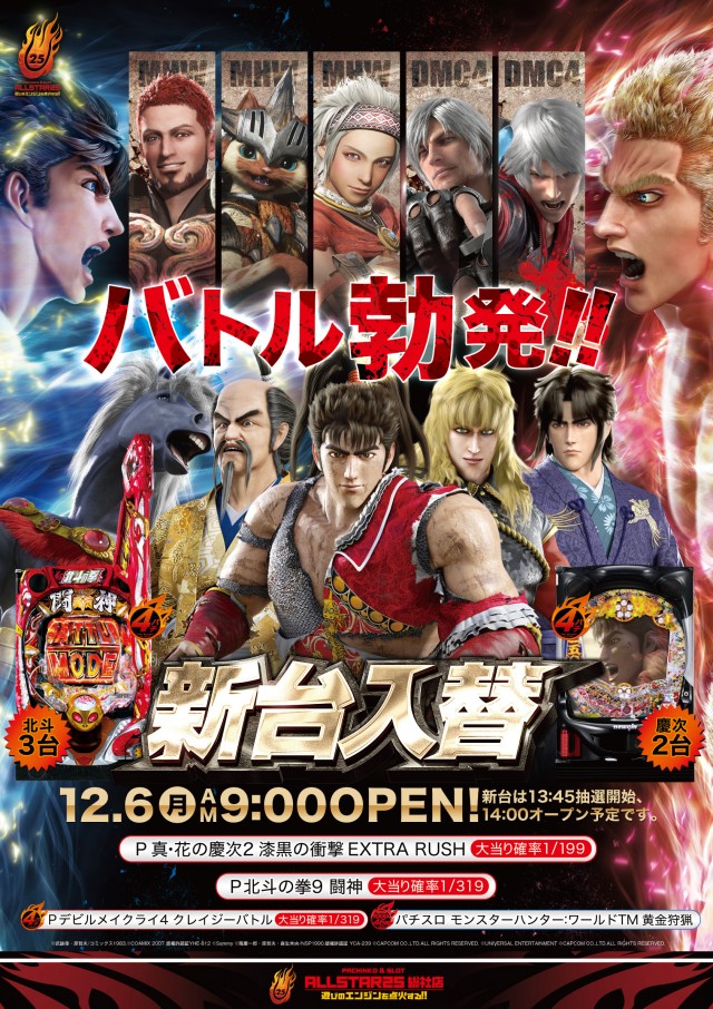例年大型タイトルの多い12月、まずは北斗シリーズ最新作「P北斗の拳9 闘神」の登場です。