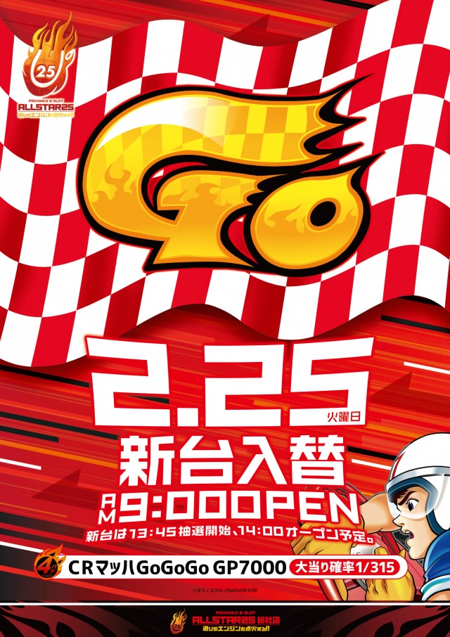 今回は確変3回リミッター機「CRマッハGoGoGo GP7000」の登場です。