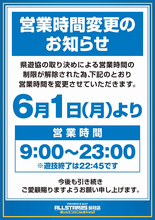 広告の内容等に制限が設けられていますが、新台入替については告知が可能となったため、大規模な反対運動でも起こらないかぎり、次回から新台入替のお知らせを再開させていただきます。