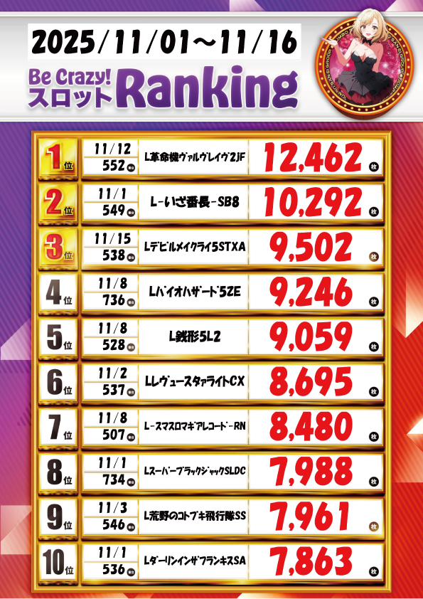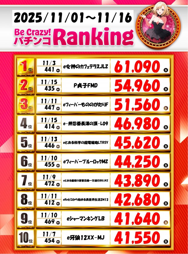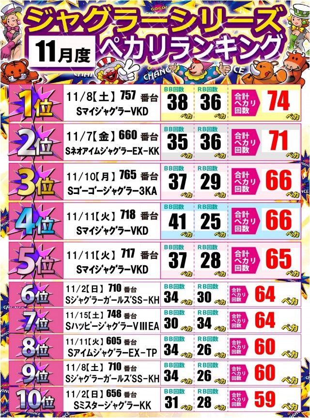 1位 11月4日(火) 2位 11月10日(月) 3位 11月5日(水)