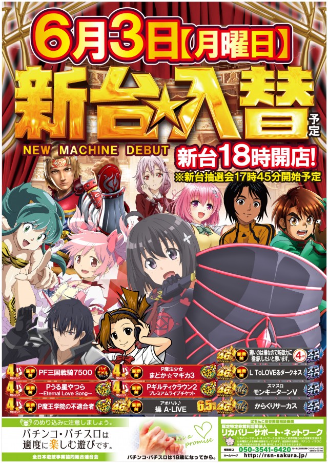 1パチ144台、4パチ144台、46枚スロ180台、6.25スロ36台の4レートで営業中!