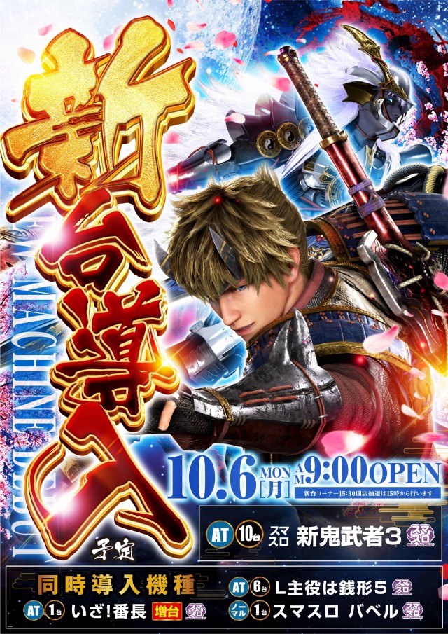 10月10日[金]3連休はエムズへ!!新台ジャグ18時開店!