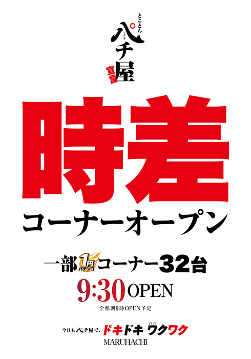 本日新台入替!1部1Pコーナー32台「9:30時差オープン」