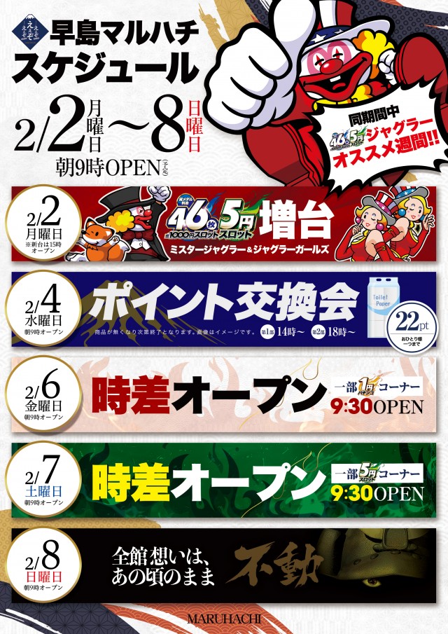 本日新台入替!ジャグラー景品入荷&1P1部時間差OPEN!