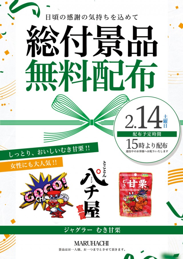 このあと15時より総付景品「ジャグラーむき甘栗」配布予定!