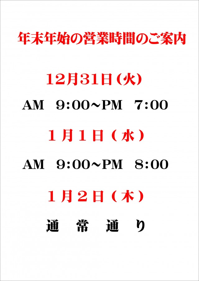 1位 12月28日(日) 2位 12月31日(水) 3位 1月5日(月)