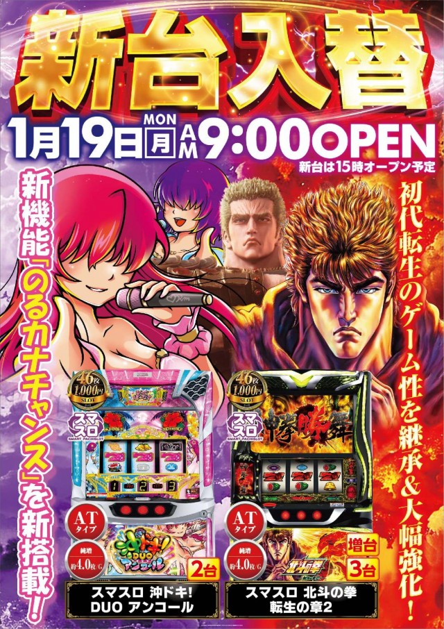 👍本日新台入替・抽選は14時45分😉お待ちしております😎