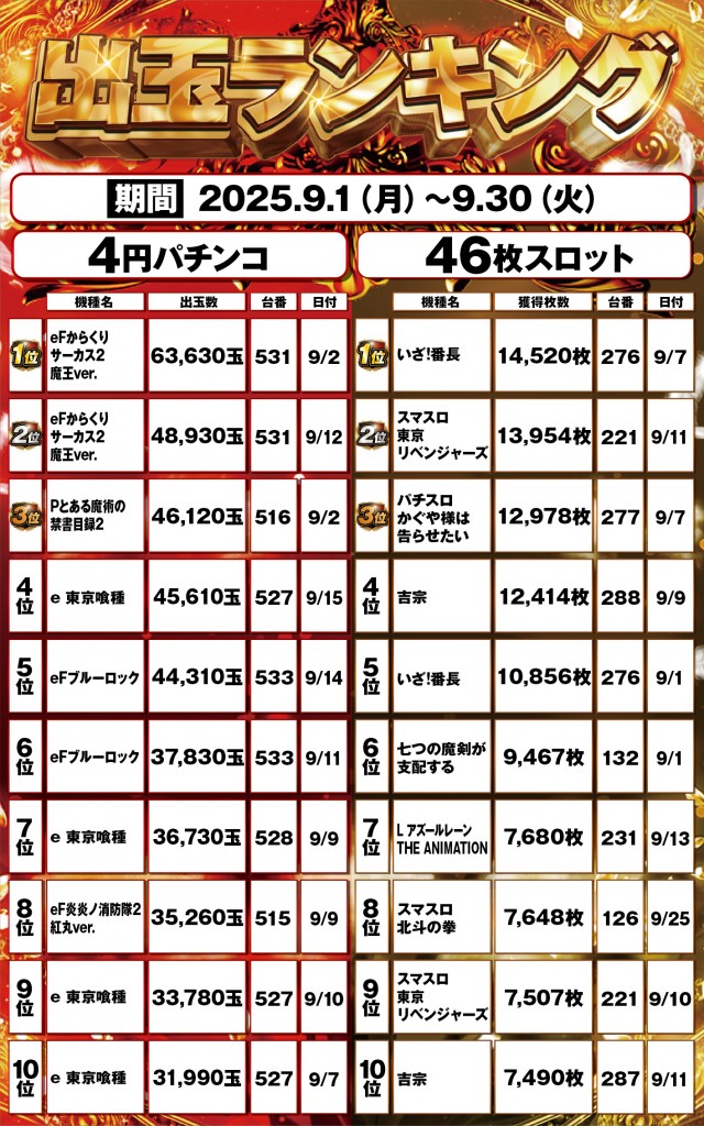 1位 10月11日(土) 2位 10月2日(木) 3位 10月12日(日)