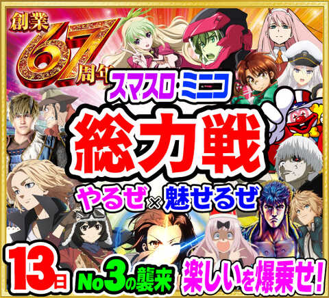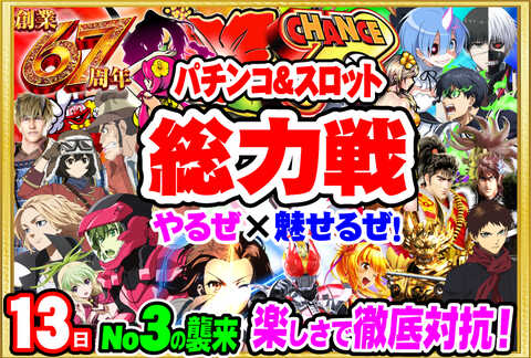 13日★No3の襲来★総力戦★やるぜ&魅せるぜ★創業67周年
