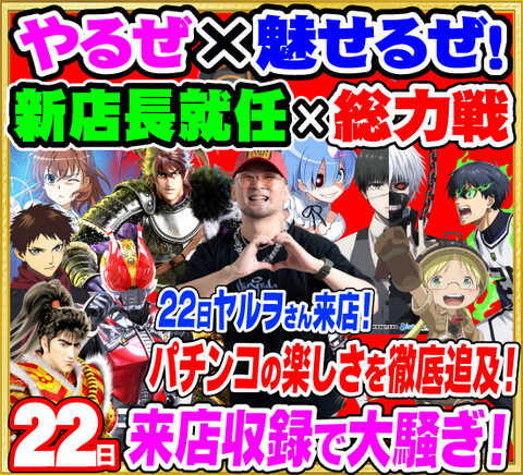 後半戦も絶対来店!🌈22日!ヤルヲさん来店収録🌈新店長就任🌈
