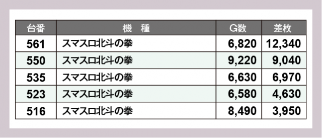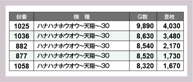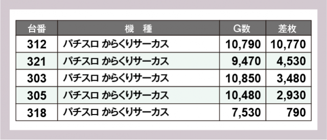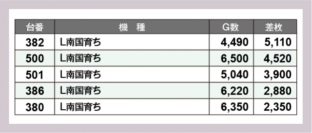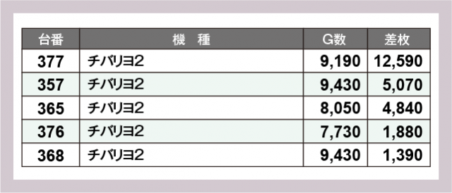 ※差枚数順に掲載しています