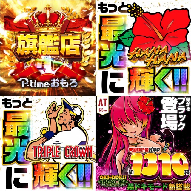 朝9時開店です。地域最大級の遊びの殿堂P‐timeおもろ店へ是非、お越しくださいませ。皆様のご来店スタッフ一同心よりお待ちしております。
