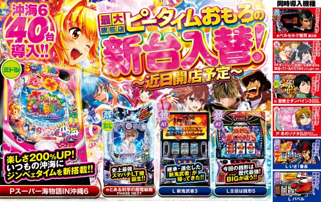 朝9時開店です。地域最大級の遊びの殿堂P‐timeおもろ店へ是非、お越しくださいませ。皆様のご来店スタッフ一同心よりお待ちしております。