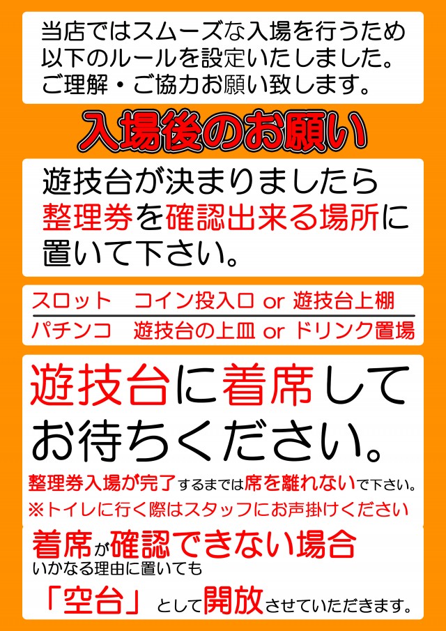 スロット 9:00 ~ 23:30 パチンコ 9:00~23:30 |