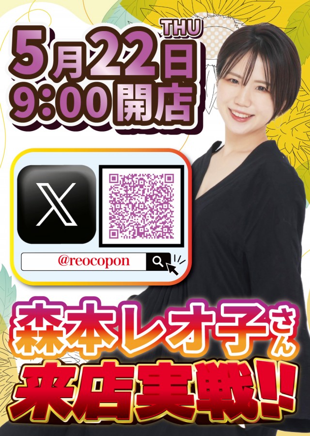 森本レオ子さん来店実戦!×ドリームナイン!8時45分抽選開始