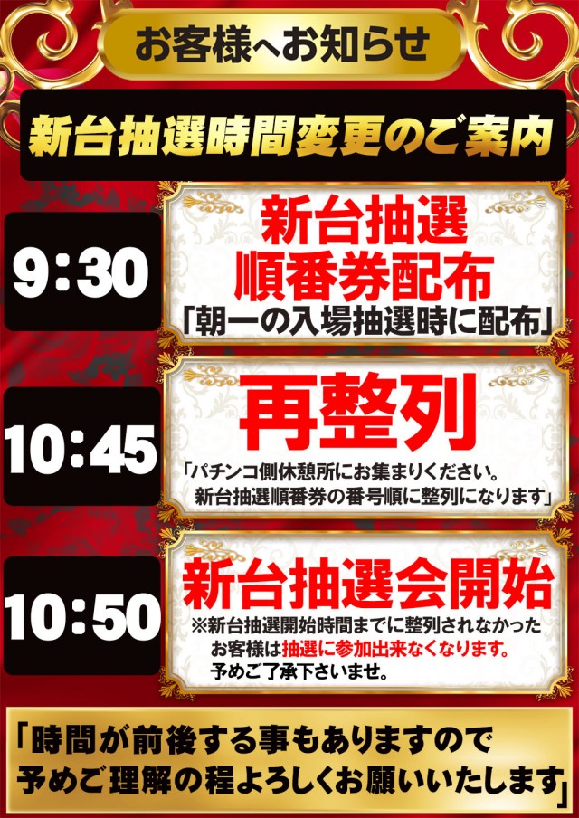 AM8:40分より抽選開始。AM8:55から再整列。AM9:00入場開始。 |