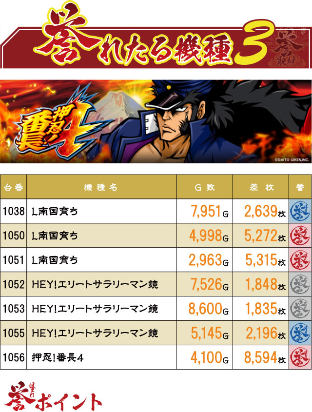 果たして6月6日(木)のパチスロコーナーにて【誉】を見つけることはできたのか?