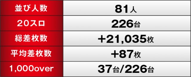 4月14日、「M’sニューポート」にて4月よりスタートした新企画「英雄のリアル」デビュー戦を迎えた。当日は81人のファンが集まり、彼らは初戦を迎えた同店に対して大きな期待感を抱いていたのは間違いない。そしてファン諸氏が力強くレバーを叩いた結果、総差枚数+21,035枚と上々の内容で終了。以下からは活躍した機種たちを列挙していくため、本レポートを最後までチェックし、今後の参考にしてもらいたい!