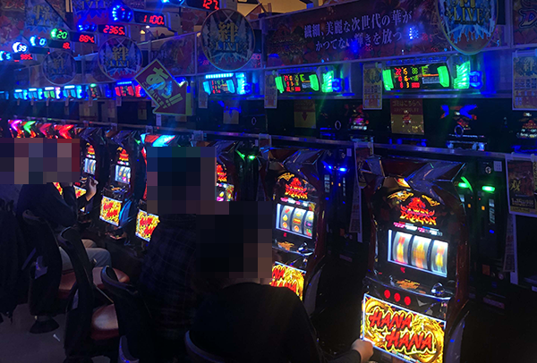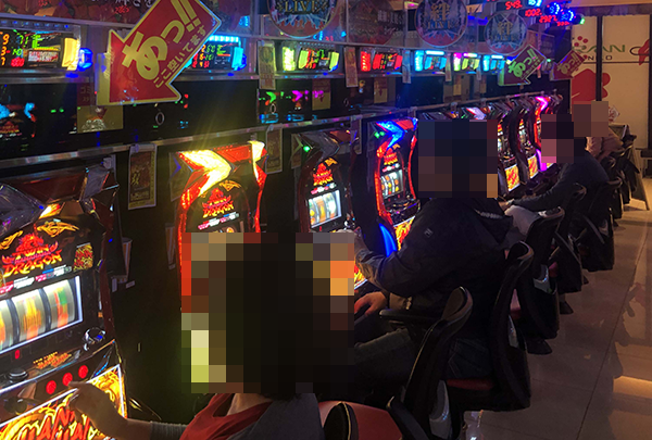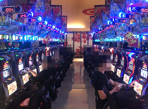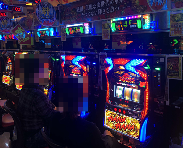 また、知り合いと思われるプレイヤーが隣同士で談笑している場面もあり、パチスロのおもしろさを共有しているように映った。