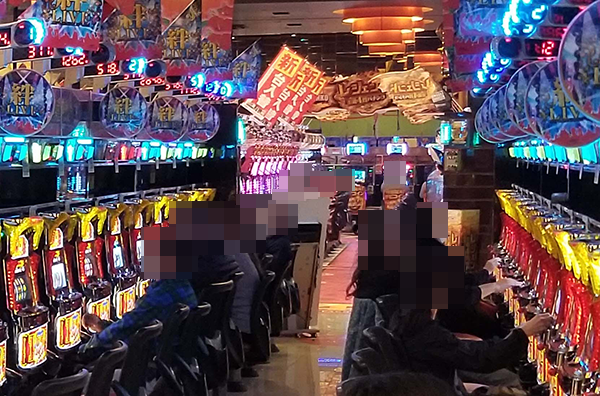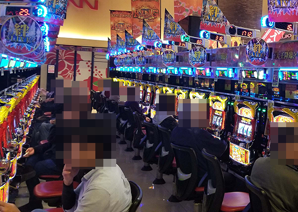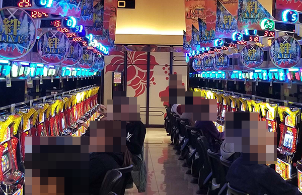 ホール全体が明るい雰囲気に包まれているなかでも、「グレートキングハナハナ-30」で遊技を楽しむプレイヤーたちのイキイキとした様子がとくに印象的であった。
