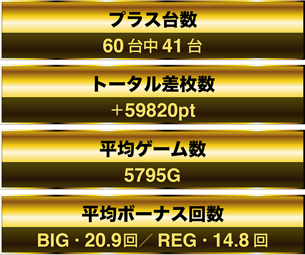 平均ゲーム数は5700Gと少々物足りなかったため、 もっと遊ばれていればとってもボリューミーなBIG回数がみられたのでは!?