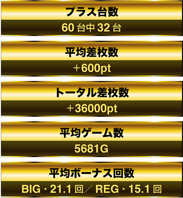最終的には半数の台がプラスptとなっており、にぎわうホール内でもひときわ存在感を放っていた。