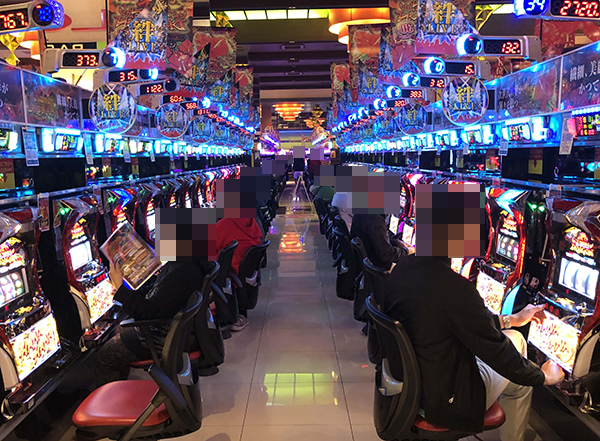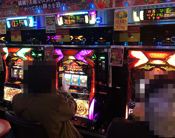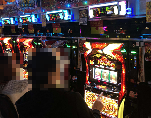 入店してから退店するまで、つねに明るいムードが感じられた「エルグラン大山店」。とくに「ツインドラゴンハナハナ‐30」でみられたプレイヤーのうれしそうな表情が忘れられない。