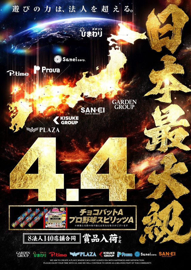 9:00 ~ ぱちんこ閉店23:00 スロット閉店23:30 |