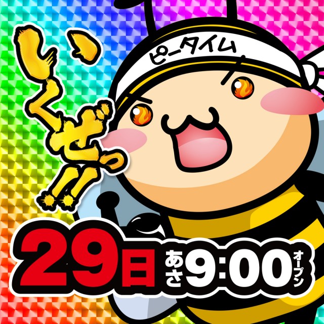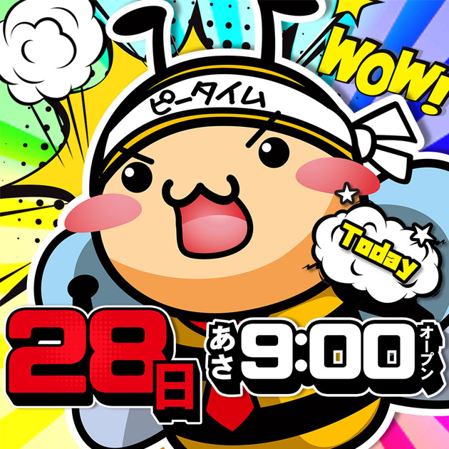 🐝ハッチーと遊ぼう!朝9時開店!新台好評稼働中です🐝