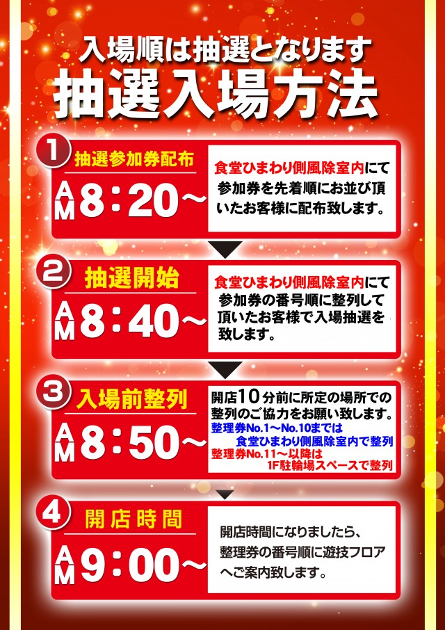 AM8:30分より整理券配布。AM8:55から入場前整列 |