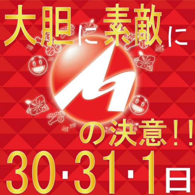 明日のご案内、〇の付く日から3日間はMの決意開催!絶対来店!